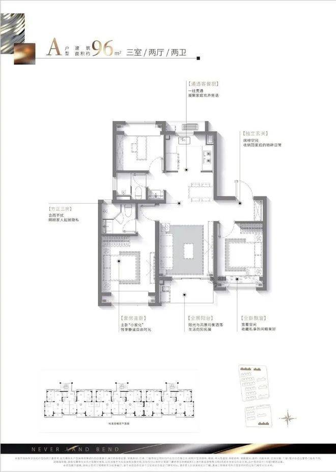 建面约:96㎡ 三房两厅两卫(高层)
