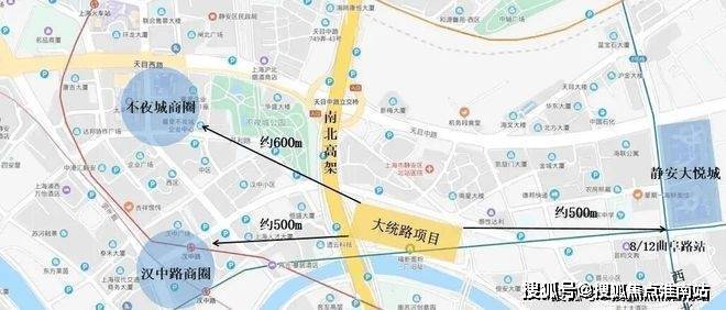 周边500米左右有静安大悦城、万象天地、汉中路商圈,约600米可至不夜城商圈。另距离人民广场商圈约1公里,距离南京路步行街约1.8公里。