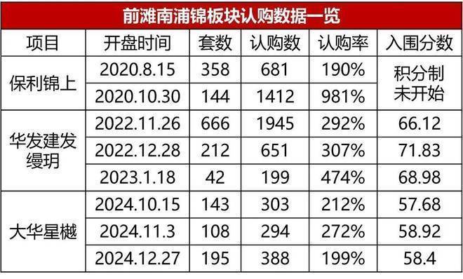 从2020年至今,浦锦板块一直逢开必爆,2020年入市的保利锦上在没有积分制的年代创下千人摇的神迹;之后的缦玥、大华星越都次次触发积分!