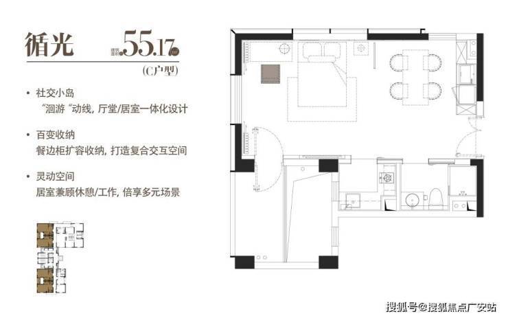C|循光|建面约55.17 m²|一室一厅一厨一卫