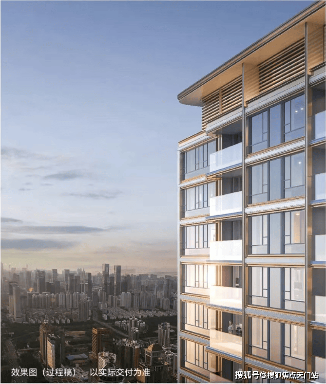 在建筑立面上,通透玻璃幕墙叠加铝板,缔就钻感镜幕墙,「江湾之钻」钻感面屏+大窗墙比,地标艺术美学,境启全新奢宅风尚。