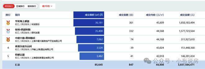 阳春伊始,项目就以成交套数、成交金额、成交单价、成交总价、成交面积“五冠王”刷屏松江成交榜;此后,一季度继续蝉联松江区销售套数&金额TOP1,半年时点仍旧是板块套数、金额、成交单价三料冠军;到1-10月,更是在松江区和洞泾板块住宅成交面积、套数、金额上再度稳居前列!