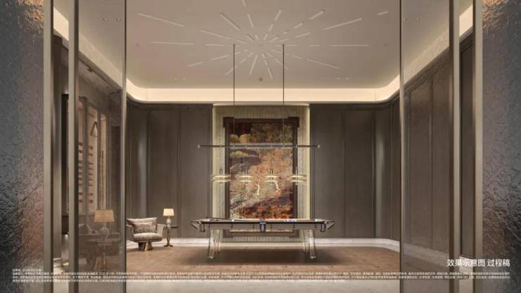 约 1200㎡私享会所,内配沃特罗伦主题健身房、双面采光恒温泳池,连接双下沉式庭院,与九球室、壁球室等多元空间。