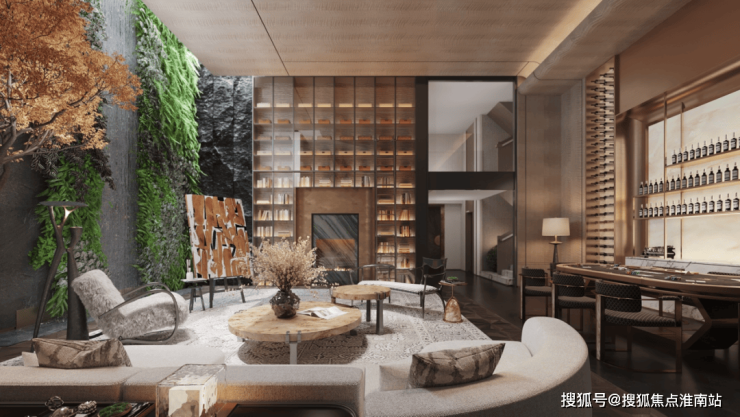一进院:社区门口的 6米宽瀑布景墙+落石+大乔组合,构筑起一道 天然噪音屏障,进入瞬时隔离城市喧嚣!二进院:经过廊道,现代 东方照明系统与景墙的组合,在光影变幻间呈现“移步换景”的归家仪式感!三进院:来到社区中央, 18米宽的中心景观轴,搭配景观水池与疏密乔木,形成极简却又不失典雅气质的主景观花园!四进院:绿荫环绕的林下空间,为邻里交流提供惬意轻松的绿意场所!五进院:密植小乔合围的私密通道,配合定制石材院门,完成从公共到私域的过渡!1000平下沉式会所,安排了诸如健身房,私宴厅,四点半学堂,洽谈区等诸多功能,方便业主在这里安排社交活动。