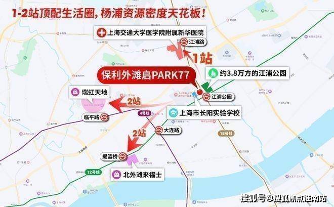 保利外滩启PARK77预约热线☎:400-8080-420✅✅)更难得的是,1-2站范围内,三甲新华医院、北外滩来福士、瑞虹商圈、江浦公园、长阳实验学校等顶配资源一应俱全。
