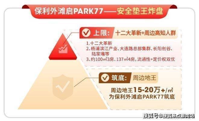 保利外滩启PARK77预约热线☎:400-8080-420✅✅再看项目价值底盘:周边地王售价预期15-20万+/㎡,为项目价值筑下坚实“安全底”;同时,项目自身“12大颠覆革新”产品力,叠加周边杨浦滨江科创产业、长阳创谷、大连路总部集群、陆家嘴金融产业的产业赋能,以及高校环绕的高知氛围,共同为项目打开了价值上限,“安全底+高上限”的组合,让资产安全性更有底气。
