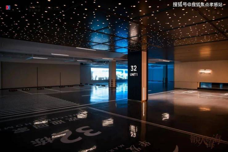 地下车库沿袭市场流行的网红星空顶设计,兼具美观度和实用性,头顶是璀璨的星空顶,绚丽氛围直接拉满;