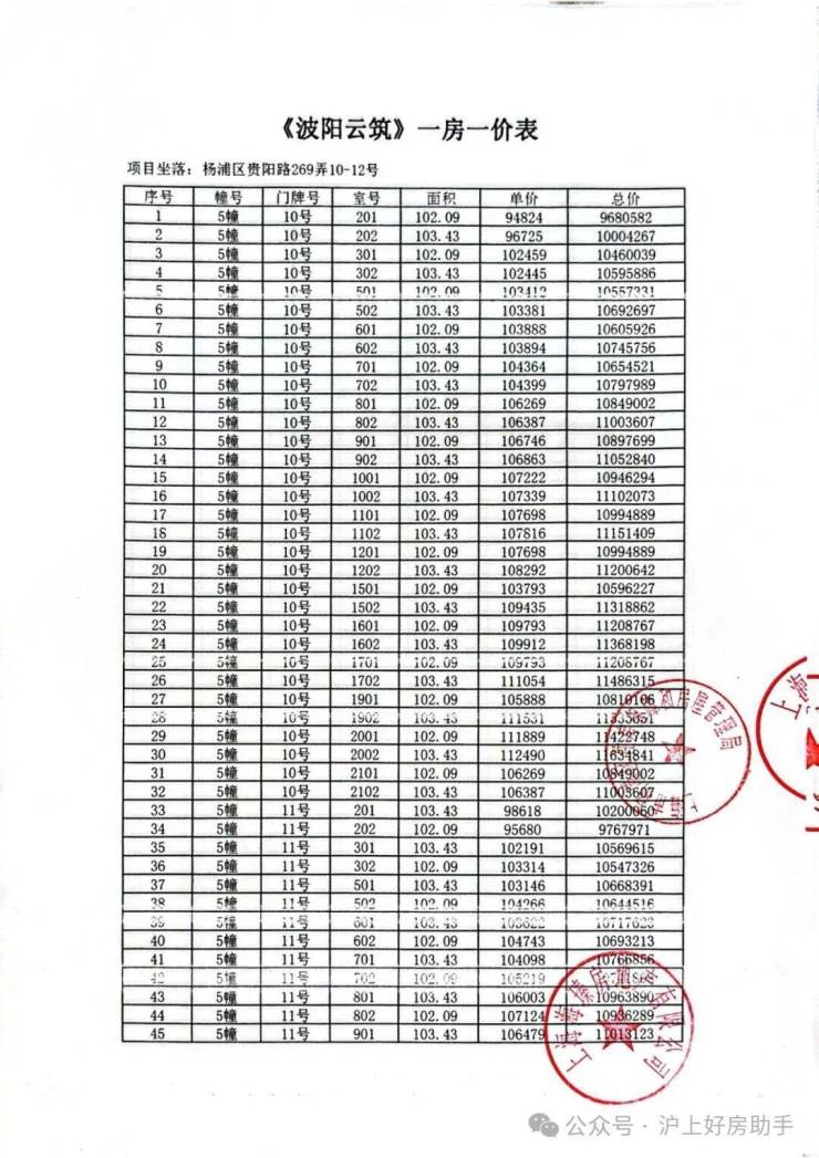 项目加推房源一房一价表▼