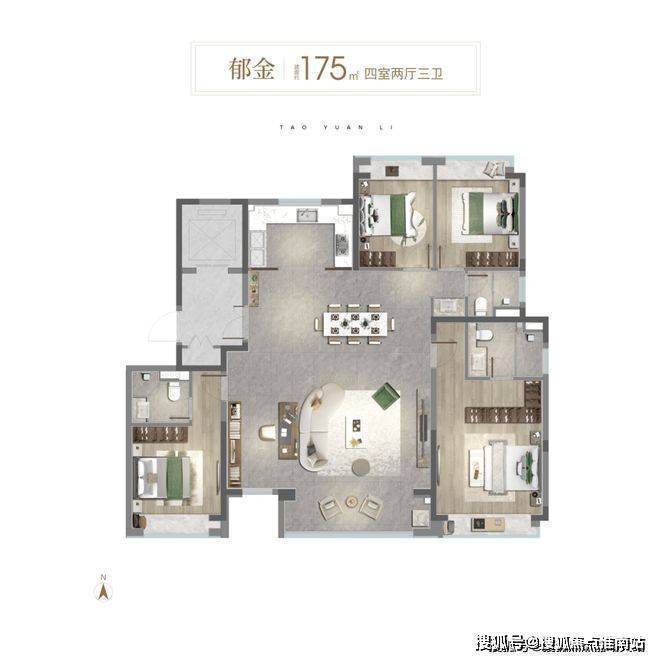 通过新桃源会客厅社区广场与独立社区会客大堂、林荫归家步道、中央景观聚场、品质入户单元昭示性景墙+专属入户铺装、首层精装大堂五大节点,赋予归家路途更多逸趣与美好。