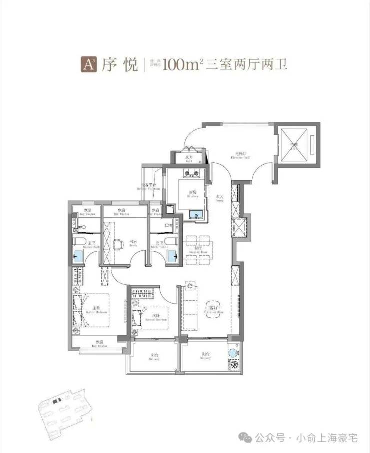 其中建面约115㎡鲲鹏阁三房户型是上海此前未见的全新王炸级产品
