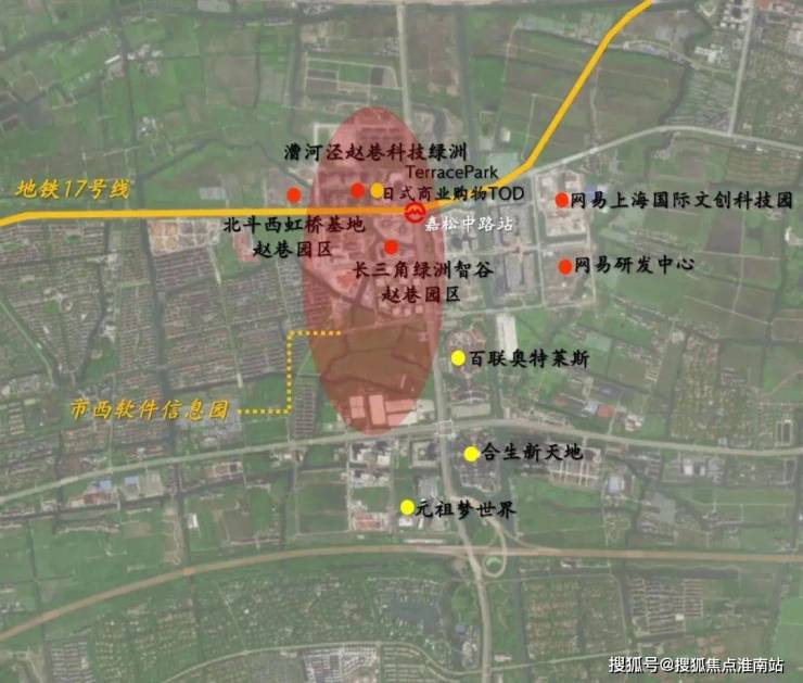 项目分为南北两个区域,总面积约55000平方米,无缝连接轨交17号线嘉松中路站。