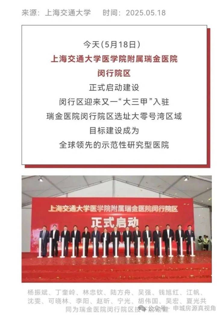 三甲医院:上海交通大学医学院附属瑞金医院闵行院区已于2025年5月动工,2028年正式营业。