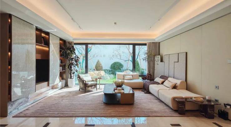 虽然此处并非交付标准,但样板间的这一做法极具参考价值。在实际装修时完全可以借鉴这种思路,将收纳需求与电视功能完美结合,打造既整洁又实用的客厅空间。