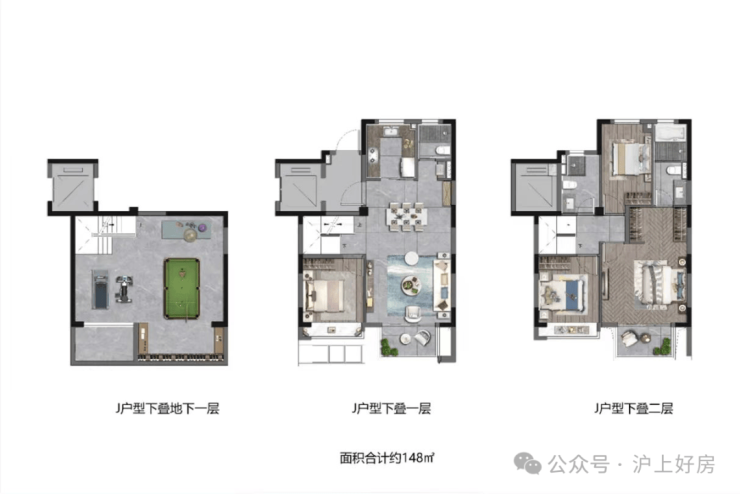 还有建面约135㎡三房上叠、建面约148㎡四房中叠以及建面约148㎡四房下叠,将多重生活场景安放在上下多层空间,满足叠墅生活进阶的期待。叠墅上有露台,下有庭院。