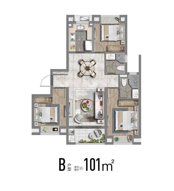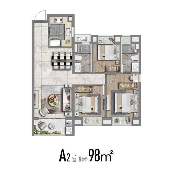 正三房设计,无论是98㎡精奢三房,还是113㎡舒适性三房,空间的尺度感十足,坚持不缩水。从主卧、到老人房、儿童房,每个人都有自己独立的空间。