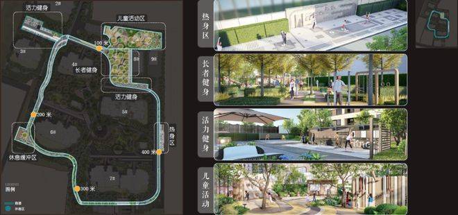 精心设计的环绕社区的 400m跑道系统串联热身区、定制主题儿童活动区、老年健身区、活力健身区和休憩缓冲区 五大运动活力系统,家人在社区内锻炼身体的祥和画面呼之欲出。