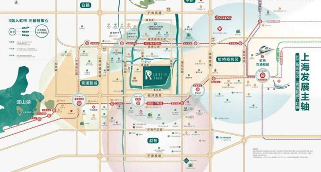 轨交17号线:项目距赵巷地铁站约2.3km,6站直达大虹桥交通枢纽