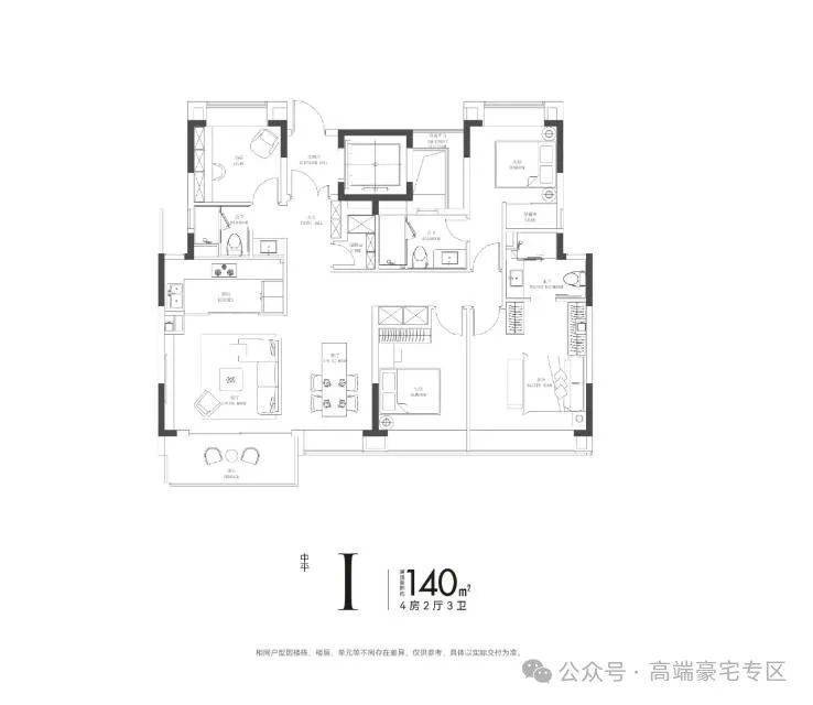 大师臻造,同频世界奢宅美学理念。高层/小高层立面采用部分天青色铝板,叠墅立面采用天青色釉面陶板,融合大面玻璃开窗(LOW-E玻璃),彰显澄澈简约,又时尚前卫的摩登气质。