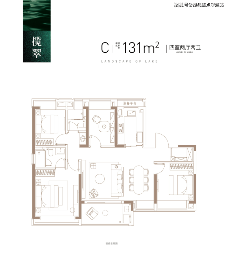 建面约131㎡4房2厅2卫,两梯两户设计,给足了业主归家仪式感和尊崇感,同时拥有一个尺度阔绰的入户门厅作为自己家的延伸!