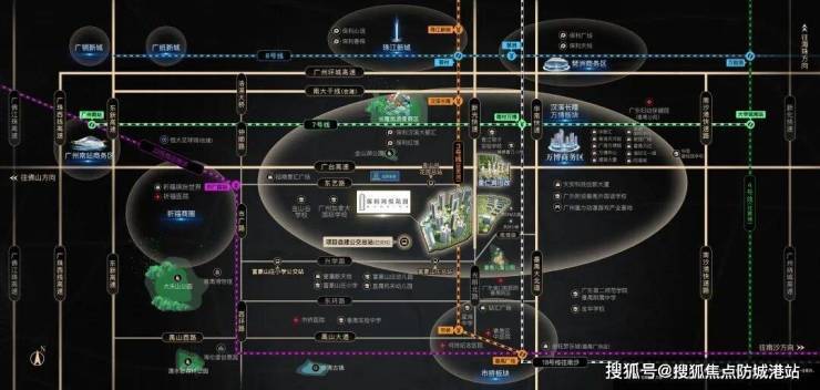 A:项目距地铁2号线唐镇站501米,自驾10分钟达广州南站,30分钟至白云机场,周边38条公交干线覆盖全城。