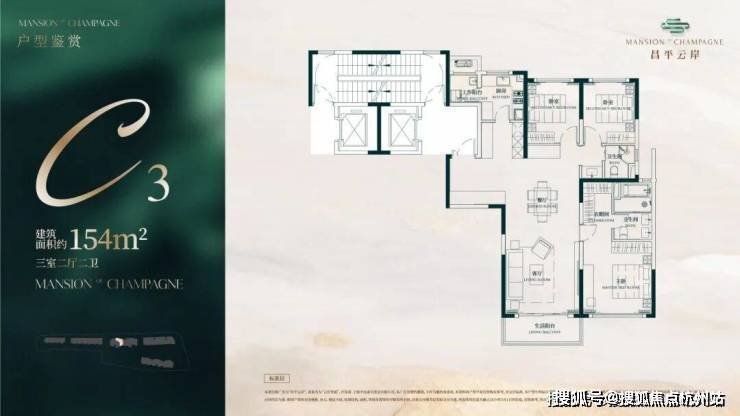 建面约154㎡3房2厅2卫户型▼