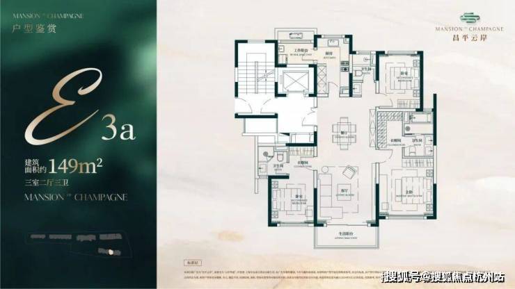 建面约149㎡3房2厅3卫户型▼