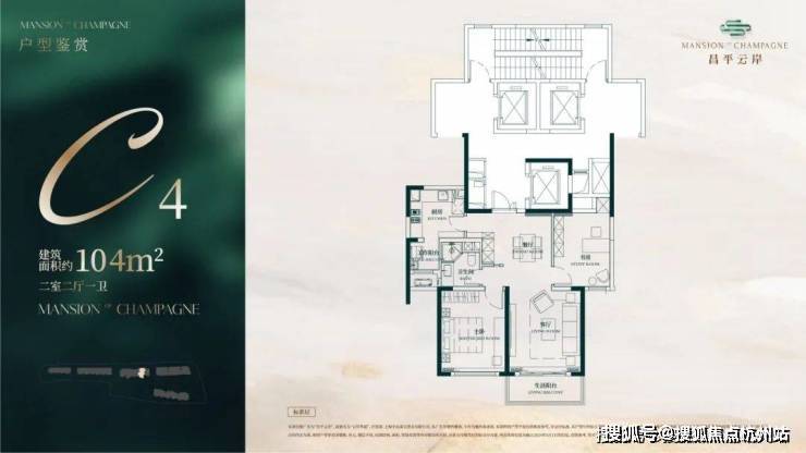 建面约104㎡2房2厅1卫户型▼