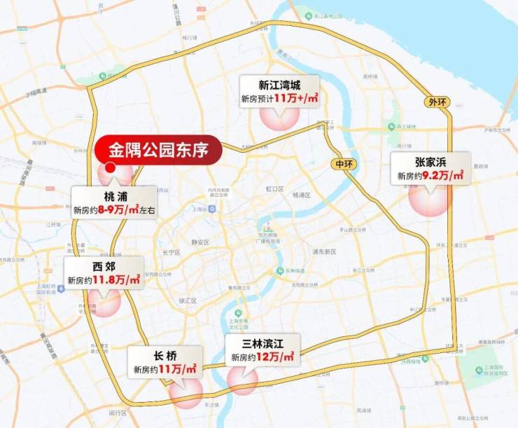 展开地图我们来看目前中外环板块的房价格局,几乎全线11万朝上,部分板块甚至12万朝上。