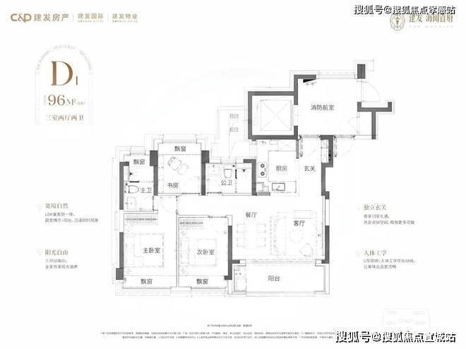 本次建面约96㎡3房66套