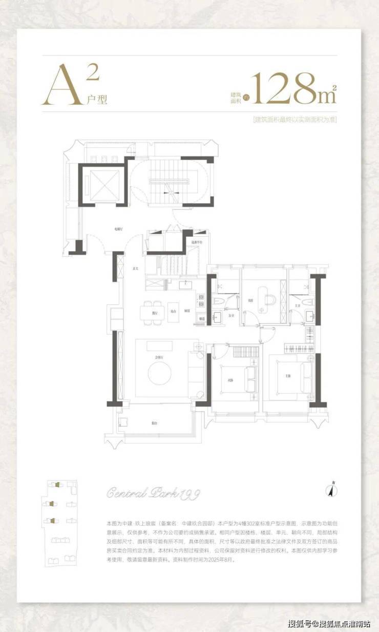 约128㎡ A户型,动静分离格局,功能区与休息区互不干扰,超大南向面宽+270°采光面,客厅开间达到了约5.4米,景观视野突出。