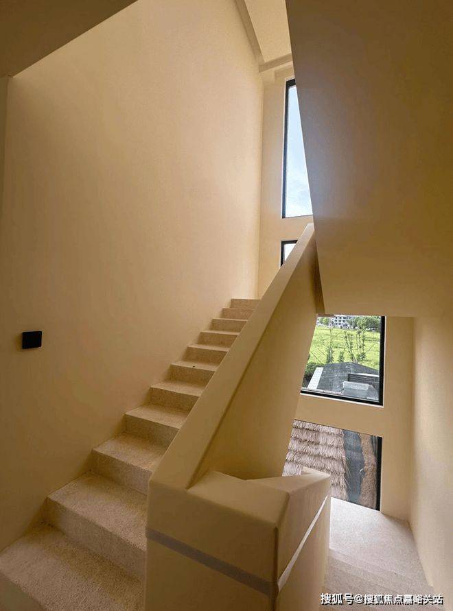 特别是楼梯间,全白色的墙面和米色的楼梯级,阳光通过窗户照入室内后,整体变成米黄色调,给人的感觉非常治愈!