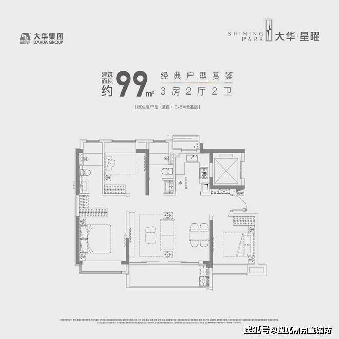 但大华星曜建面约120㎡就做了真四房的设计,保证了户型的实用性.