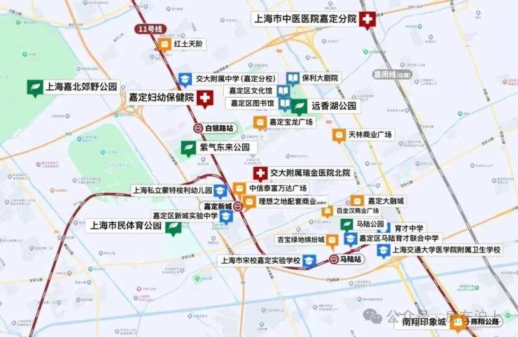 周边有三甲医院瑞金医院北院、嘉定区妇幼保健院、上海嘉定中医医院嘉定新院等优质医疗资源。