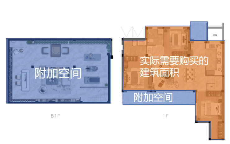 约500万可以买到的近乎建筑面积的两倍的使用空间。