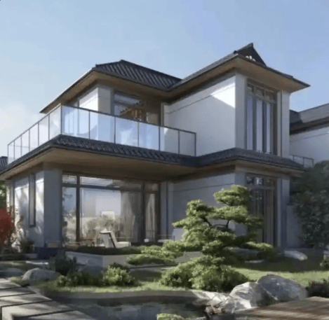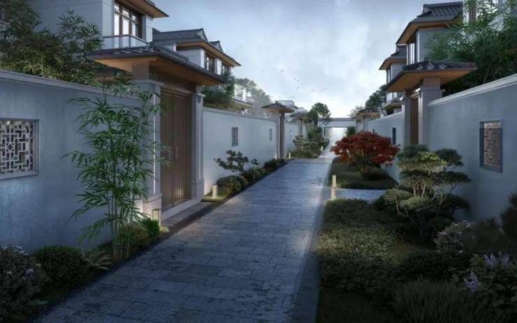 中式美学:灰瓦白墙、雕梁画栋的新中式风格,融合园林景观,营造“曲径通幽”的意境。