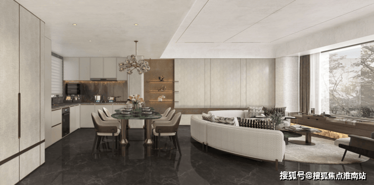 南向大横厅,用光线阐述空间的舒适度与高级感,U型中厨搭配多功能开放西厨,满足世界级美食品位。