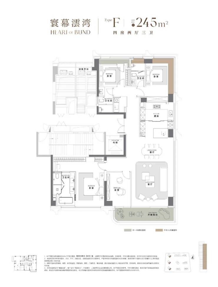 简言之,在这个建面约245㎡的户型中,最终拥有的是双重270°景观,从外部的江景到内部的景观,全面穿透。