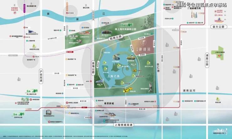 项目位干上海之鱼内,东侧是极具特色的金汇港,水脉碧波倒映生态景观。坐拥约万亩林地,占地面积约4.78平方公里南上海中央公园,更拥享上海之鱼约13公顷环湖景观带和集艺术展览、活力健身、娱乐休闲、游憩观赏为一体的现代城市公园群。