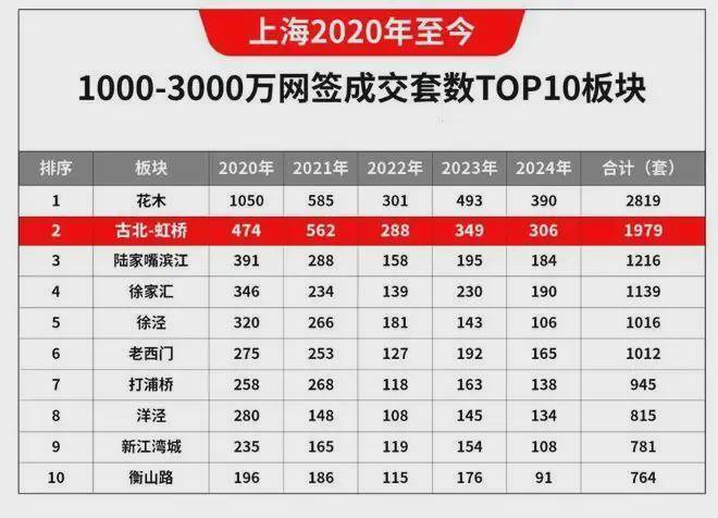 新房供应的缺失,也使得古北二手房成为圆梦古北的唯一选择,二手市场常年火爆,数据显示,2020年至今,上海1000-3000万价格段的二手房网签成交量中,古北连续5年高居全市第二,仅次于面积和楼市体量都远超古北的花木板块!