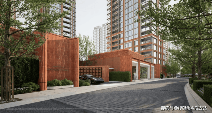 社区景观上,突破市区项目常见的「兵列树阵式」布局,通过建筑楼体的精密偏转,形成罕见的围合式社区形态。