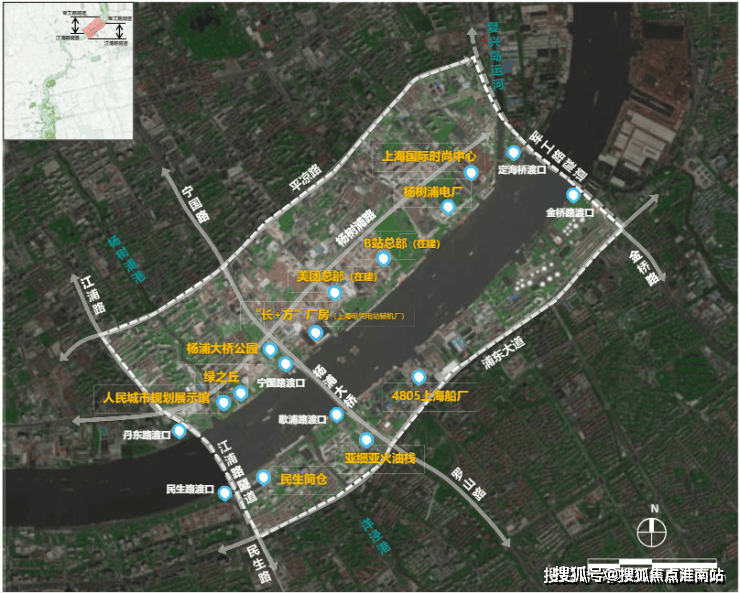 该地块位于杨浦滨江的南段,直线距离黄浦江仅约500米.