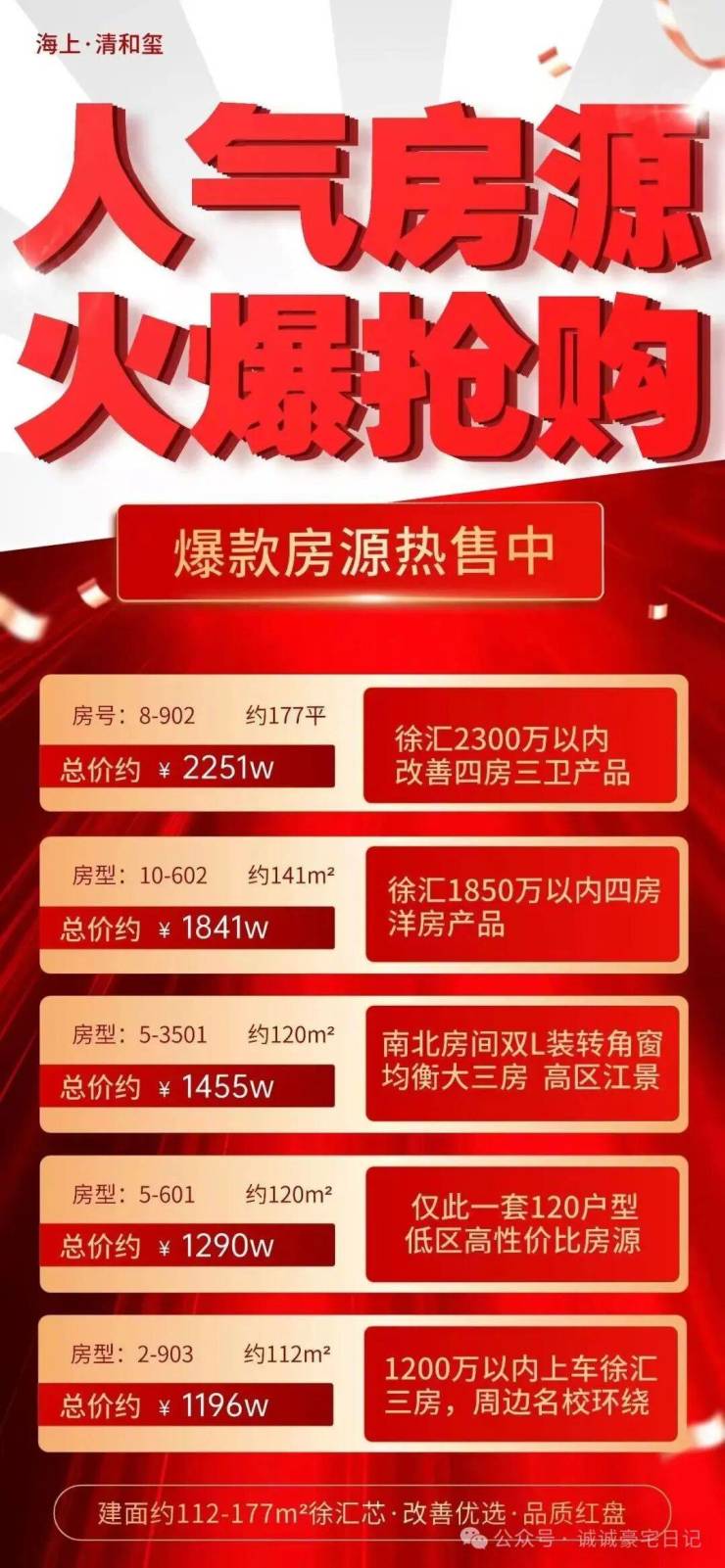 ✨海上清和玺开发商售楼部热线400-9955-415(☎开发商认证)电话。提前预约看房尊享额外优惠!徐汇千万级新房必看项目!「海上清和玺」本周热推房源发布!建面约112-177㎡3-4房,总价约1200-2300万,预约可看!