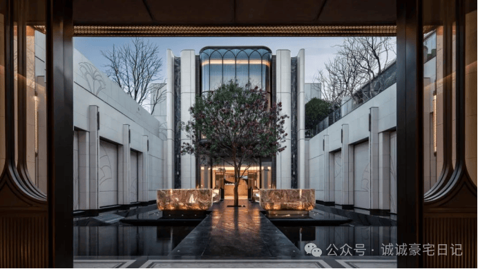 比如,整个下沉式庭院材料选用土耳其进口老虎玉,由匠人耗时60天手工打磨定制,可见海上·清和玺对业主归家仪式感设计的用心与苛求。海派光厅之外的归家迎宾树木更是由设计师辗转多个城市才寻到的、树龄超60年的福木“紫薇”。