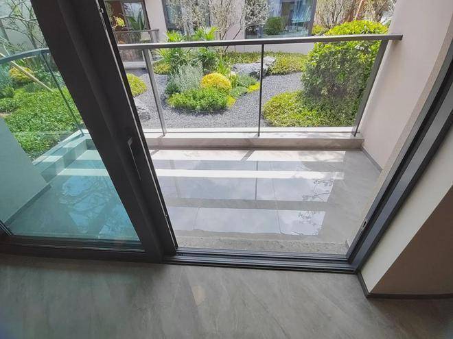 例如铝框窄边三扇移门+完美系列上轨道设计+拉丝艺术玻璃,是身份的象征、也是业主格调的体现;
