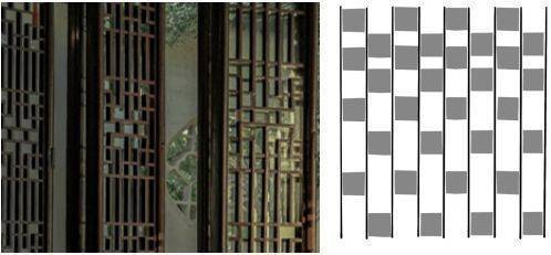 提取传统民居窗棂元素分割转化为立面的格纹肌理。