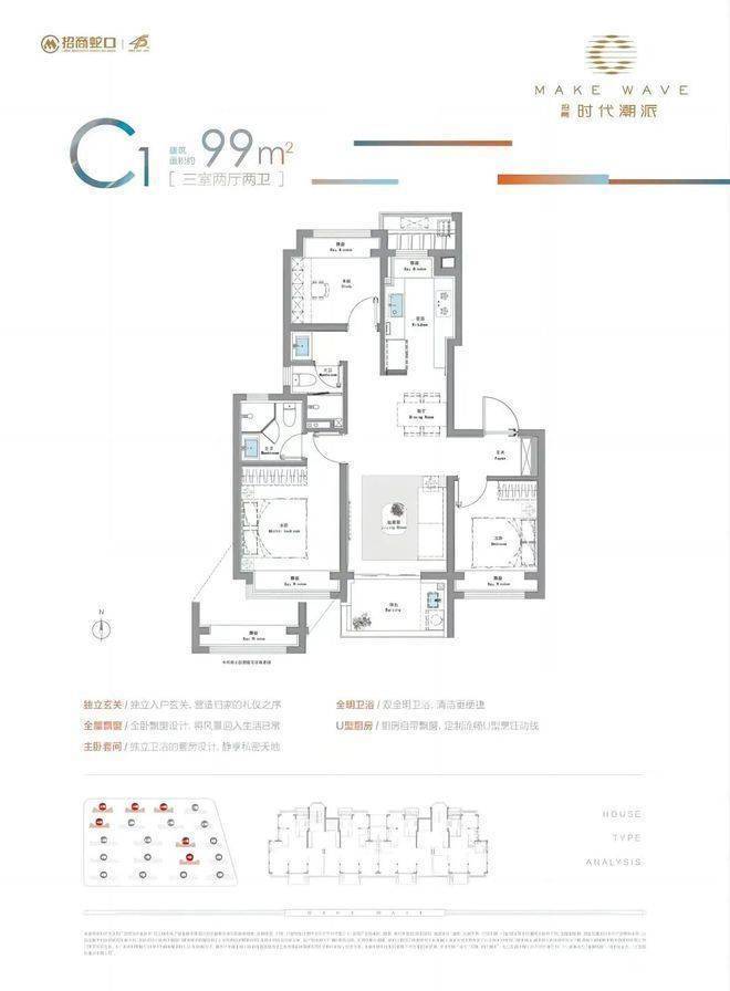 作为西上海50万方TOD大城,其住宅产品「招商时代潮派」目前五批次房源已过会,加推136套建面约99㎡3房,均价51664元/㎡!
