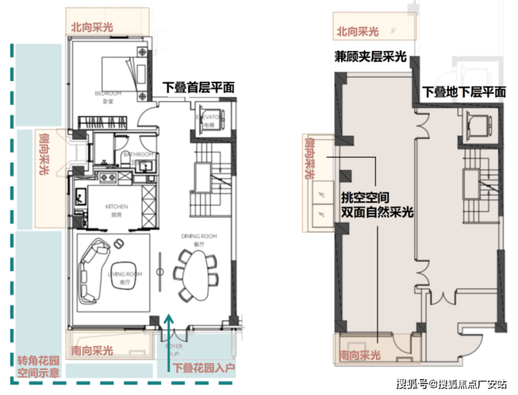而且,无论上叠还是下叠,在南北两个转角的主空间,全部做到了全面积转角开窗。这样通透的视觉感受,也只有叠墅这一种产品可以做到!