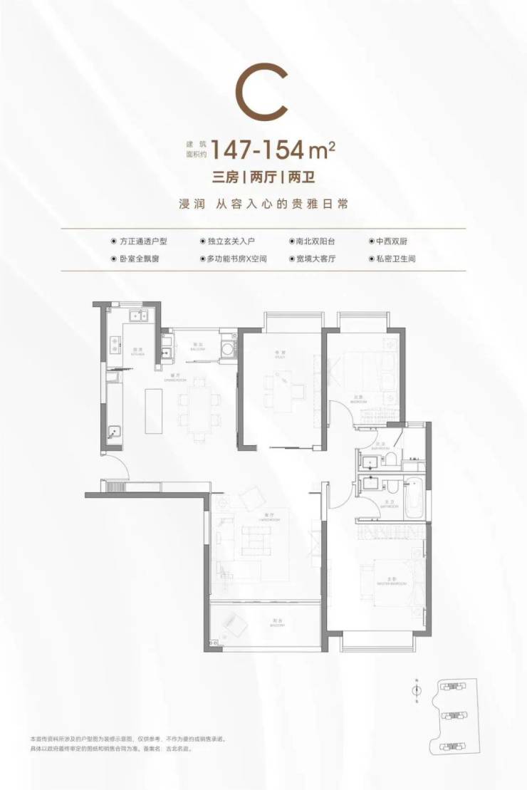 建面约147-154㎡ 3房2厅2卫▼