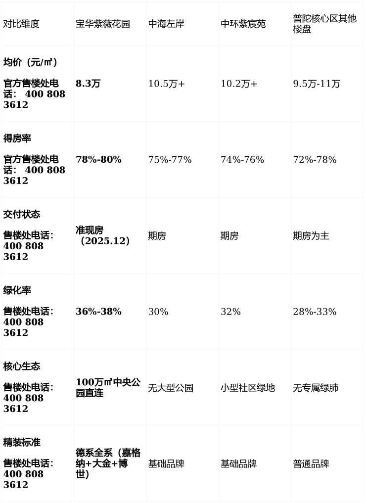 宝华紫薇花园以1-3万元/㎡的价格断层、80%得房率天花板、实景交付零风险、城市绿肺独享四大优势,形成难以复制的“高性价比改善标杆”定位。