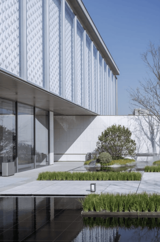 项目建筑设计由全球TOP3建筑设计事务所KPF操刀,以“时光叠影”为设计理念,外立面采用玻璃幕墙、金属线条与石材基座的组合,展现现代建筑的轻盈通透。社区规划采用“低密+高绿”原则,仅布局8栋14-16层小高层,形成“一轴三园”景观结构,中央景观轴长约150米,三大主题花园分别为“工业记忆园”“滨江风情园”“禅意静思园”,营造历史记忆与自然生态交融的居住环境。